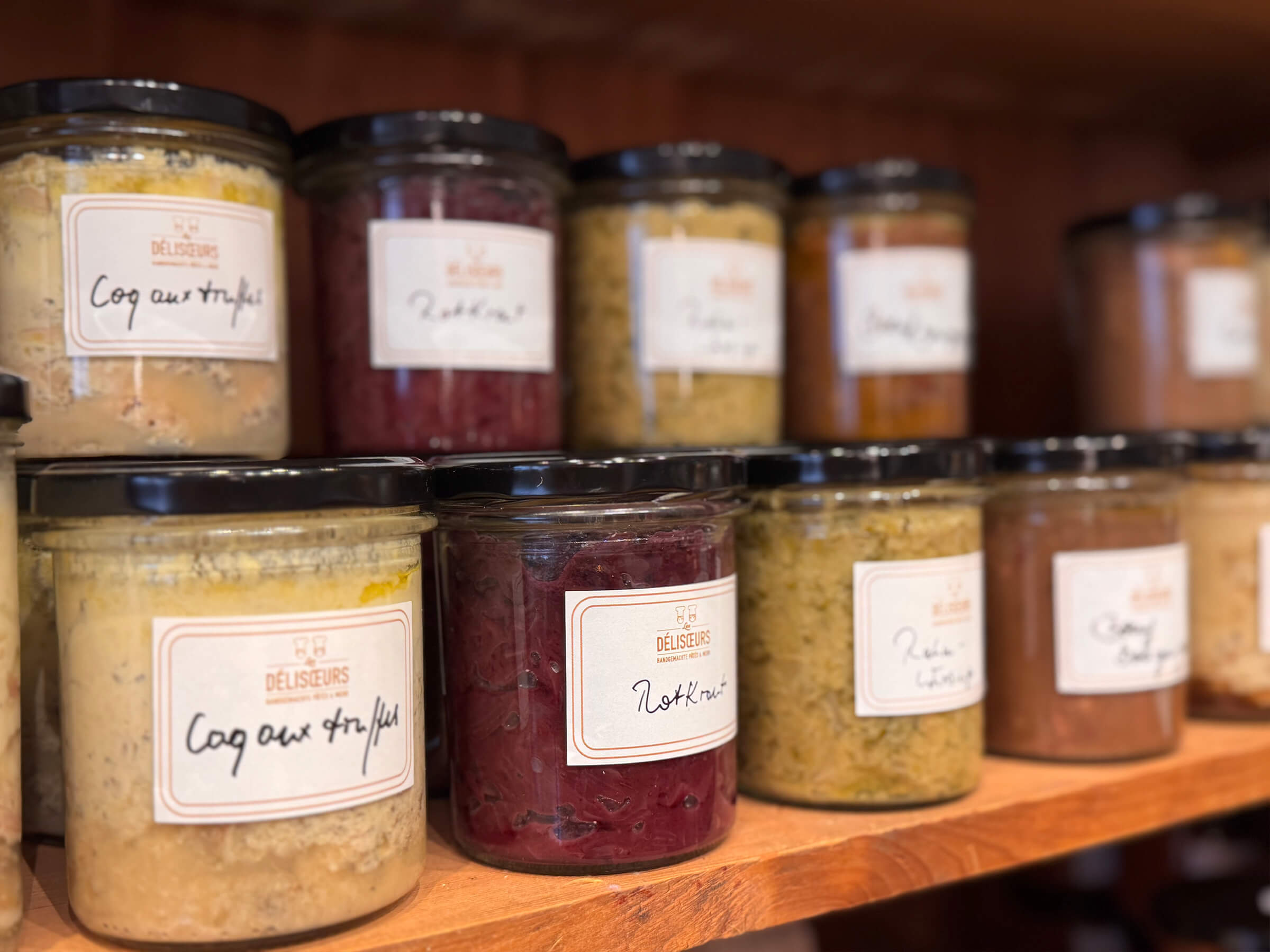 Hier findet ihr natürlich unsere handgefertigten Pâtés und Herzhaften Crèmes, aber auch eine feine Auswahl eingekochter Gerichte: französische Klassiker wie Boeuf bouguignon, Coq au vin, Tete de Veau wie auch Pastasoßen, Suppen und Hausmannskost.
