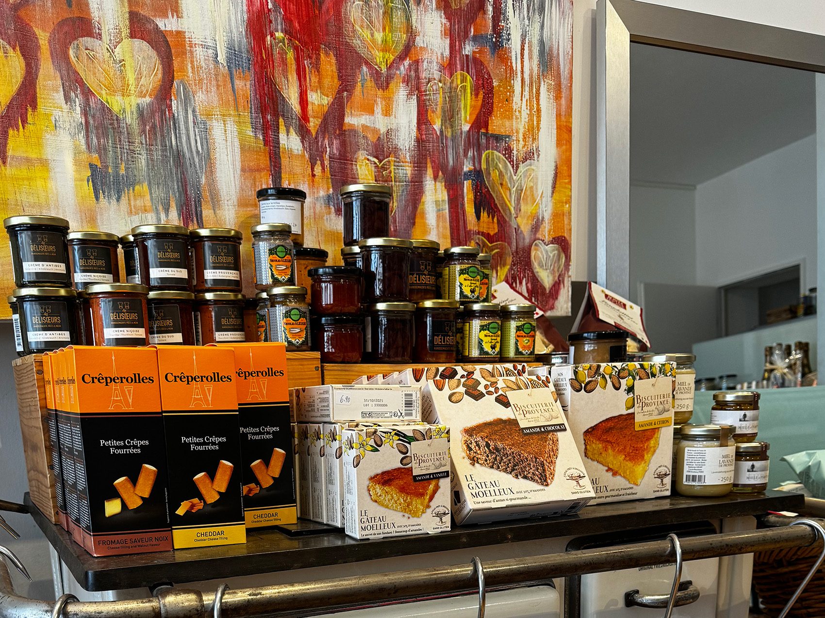 Schokotrüffeln, Essige und Olivenölen von Alziari auch saarländische Senfsorten und den tollen Limoncello und Arancello von Manu und Massi.
