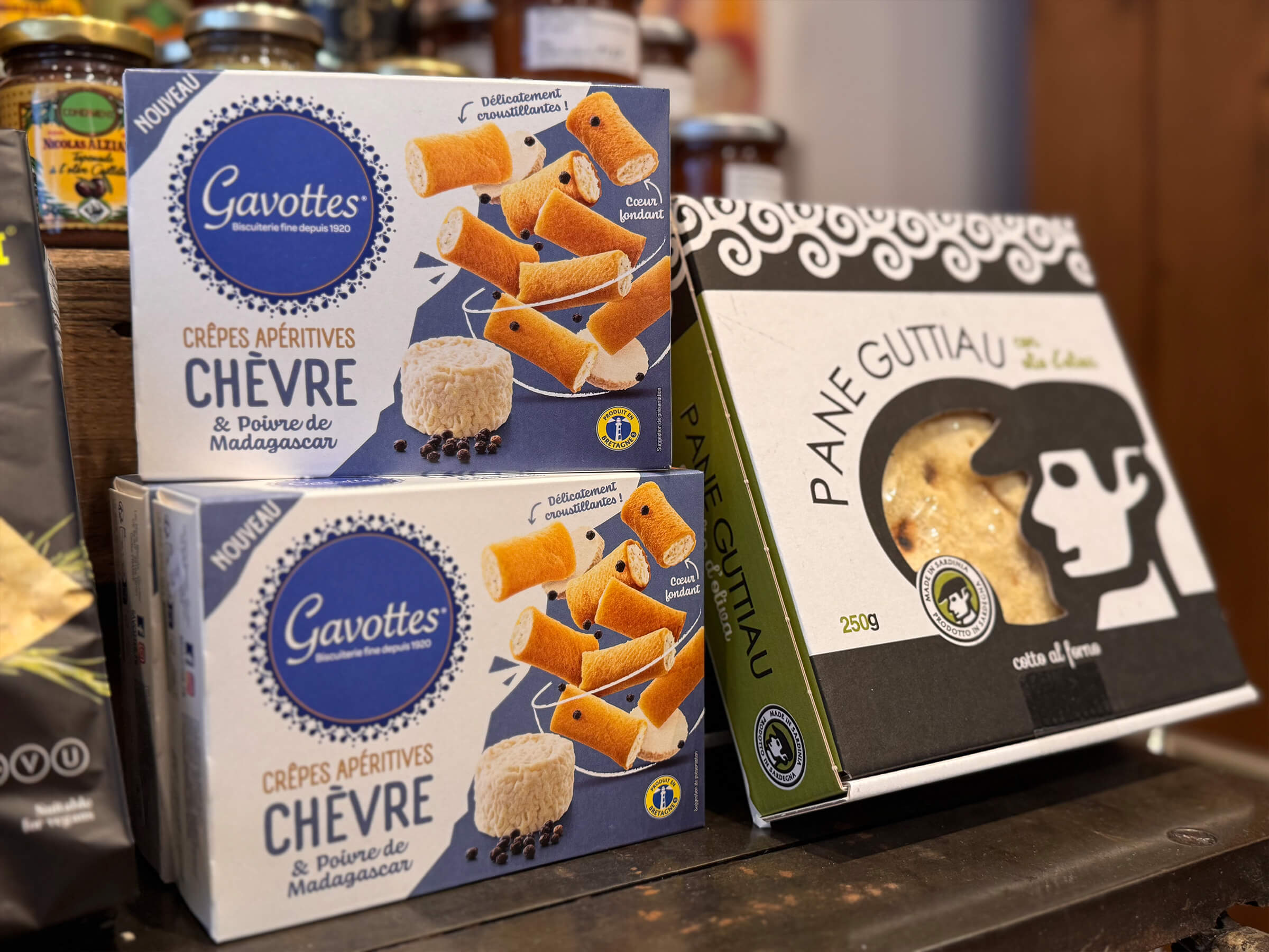 Unser Feinkostsortiment umfasst neben französischen Gebäckspezialitäten, Weinen,