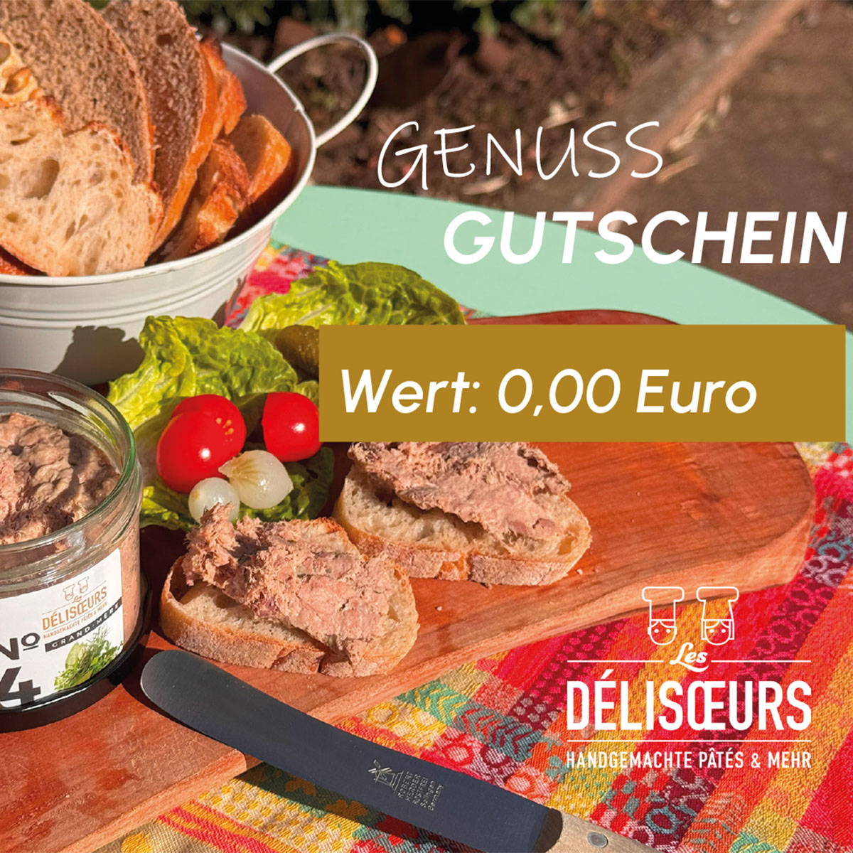 Du suchst ein besonderes Geschenk für echte Genießer? Mit unserem Geschenkgutschein machst du Freude – garantiert! Ob mit unseren handgemachten Pâtés, Herzhaften Crèmes oder weiteren französischen Spezialitäten: Der Beschenkte kann sich aus unserem gesamten Sortiment seine Favoriten aussuchen. Wähle einfach den gewünschten Betrag und wir erstellen deinen persönlichen Gutschein und senden dir den Gutschein als PDF per E-Mail zu.