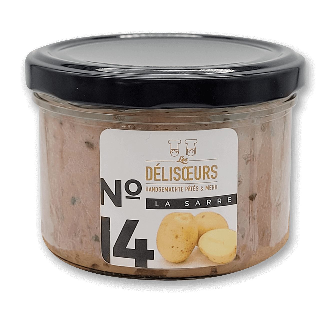Zum 100 jährigen Jubiläum des Saarlandes präsentieren wir mit No. 14 La Sarre eine Pâté, die sowohl die Verbundenheit zu unserer Heimat als auch zu unseren französischen Nachbarn widerspiegelt. Dabei haben wir eine typisch saarländische Spezialität mit unserer Pâté vereint: Das Grumbeerkichelche!